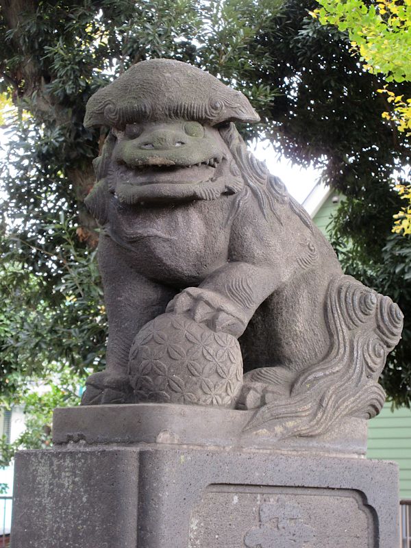 背中がボコッてなってる狛犬