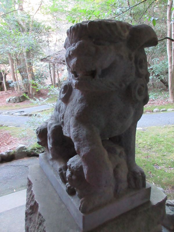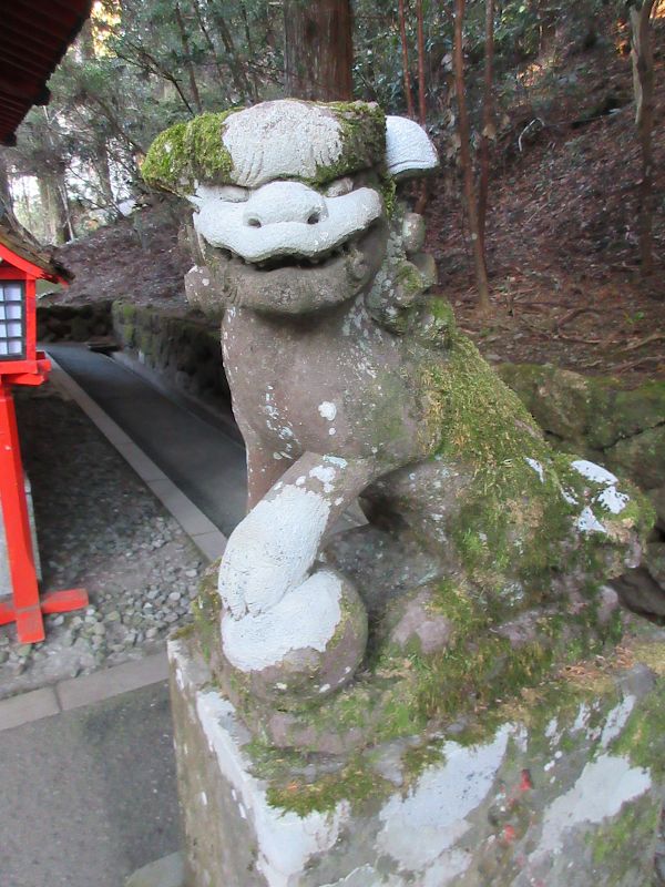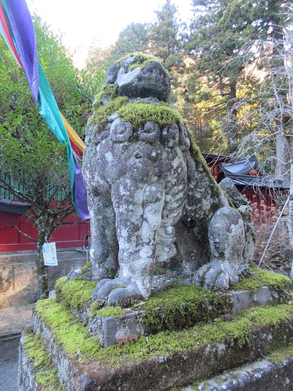 苔モリモリの狛犬