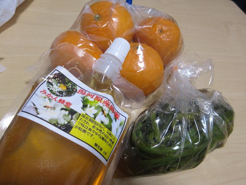 まさる君、みかん蜂蜜、からし菜漬け