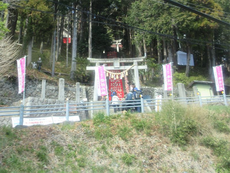 途中、車窓の神社の階段が雛壇になっていた